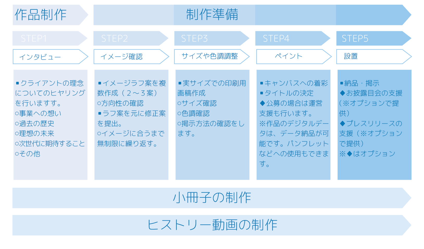 アートを使い、リマインドさせるには、クライアントの思いが作品に完全に反映されていないとその効果が発揮されないからです。とことんご自身の作品として、こだわっていただきたいと思っております。